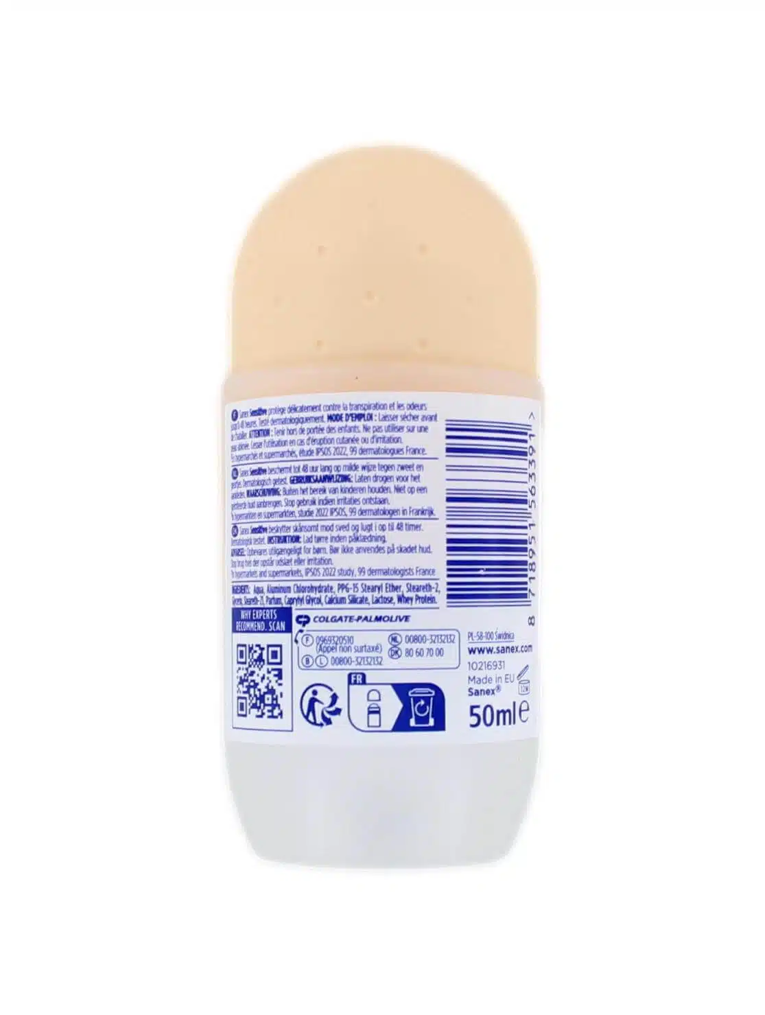 Sanex Deodorant Roller Dermo Sensitive, 50 ml